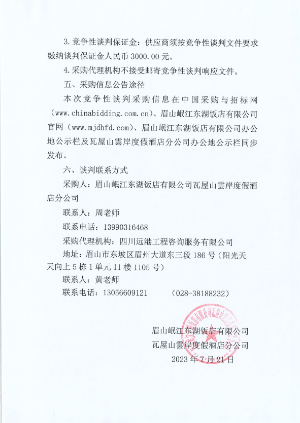瓦屋山雲(yún)岸度假酒店分公司紗窗制作及安裝 競爭性談判公告