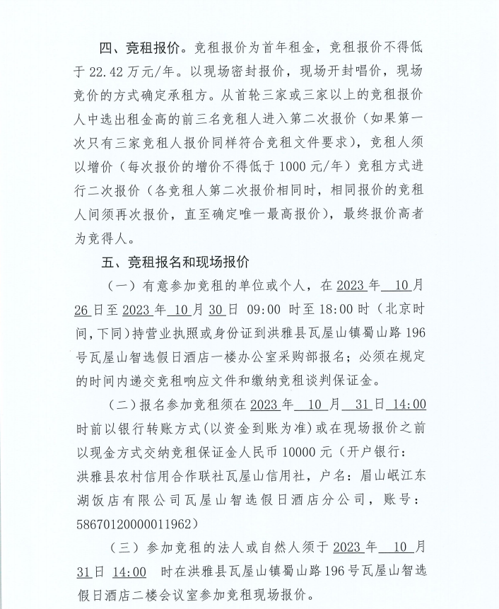 眉山岷江東湖飯店有限公司瓦屋山智選假日酒店分公司商鋪招租項(xiàng)目